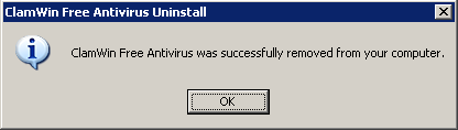 nce the un-installation has completed you should see the following dialog box, select "OK":